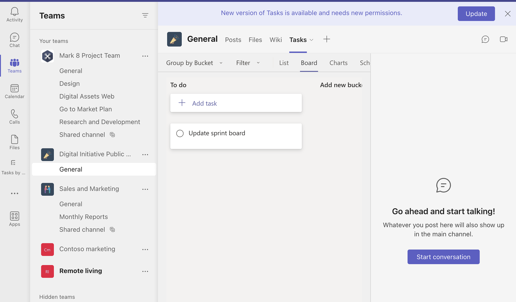 | Admin | Open a team in Teams client and update an app from the team's settings page. | Team and channel |