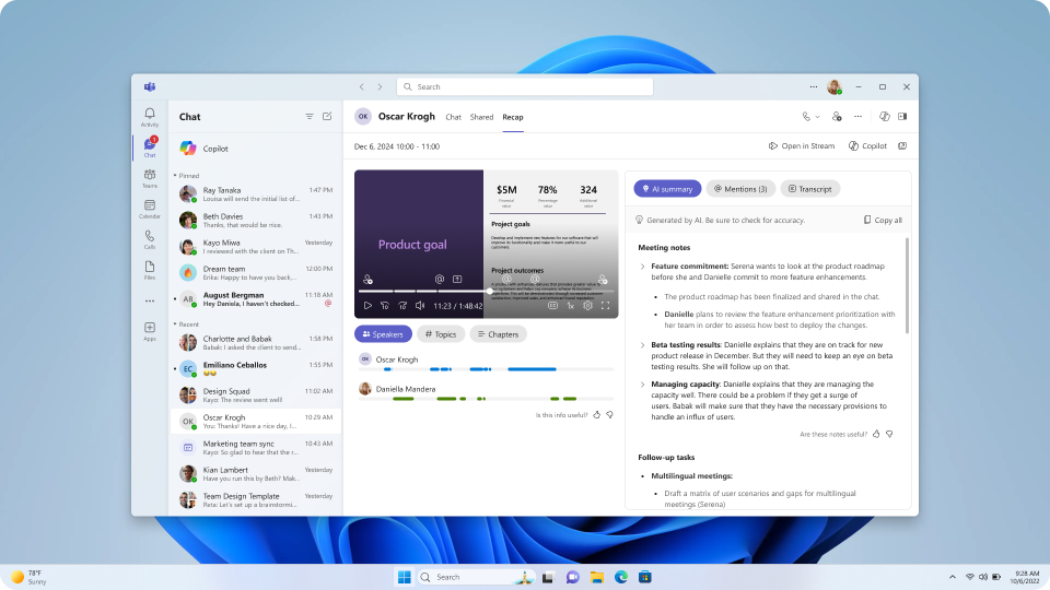 Intelligent recap for Microsoft Teams uses AI technology to improve your users’ productivity and efficiency. This article is designed to guide you, as an admin, in understanding intelligent recap’s prerequisites and capabilities.