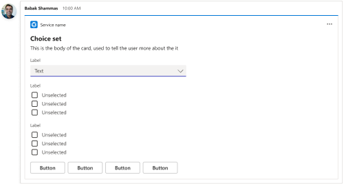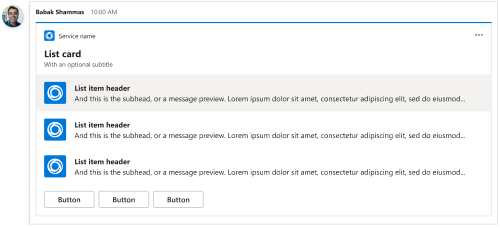 Adaptive Cards have a lot of flexibilities. But at minimum, we strongly suggest including the following components in every card: