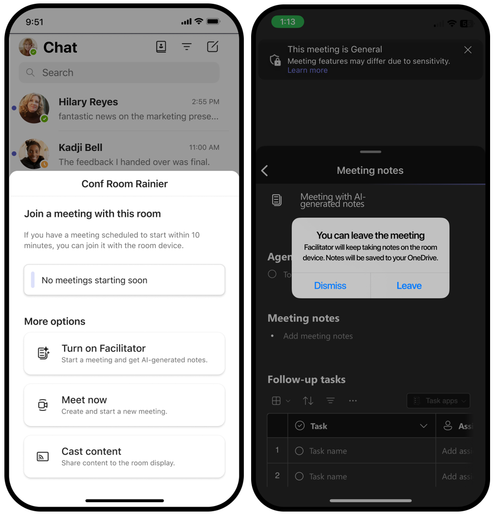 - Facilitator in Teams Used for Teams meetings that are scheduled on a calendar. This can include a Teams Rooms device, where Facilitator chat interactions and AI notes can be viewed by in-room participants.