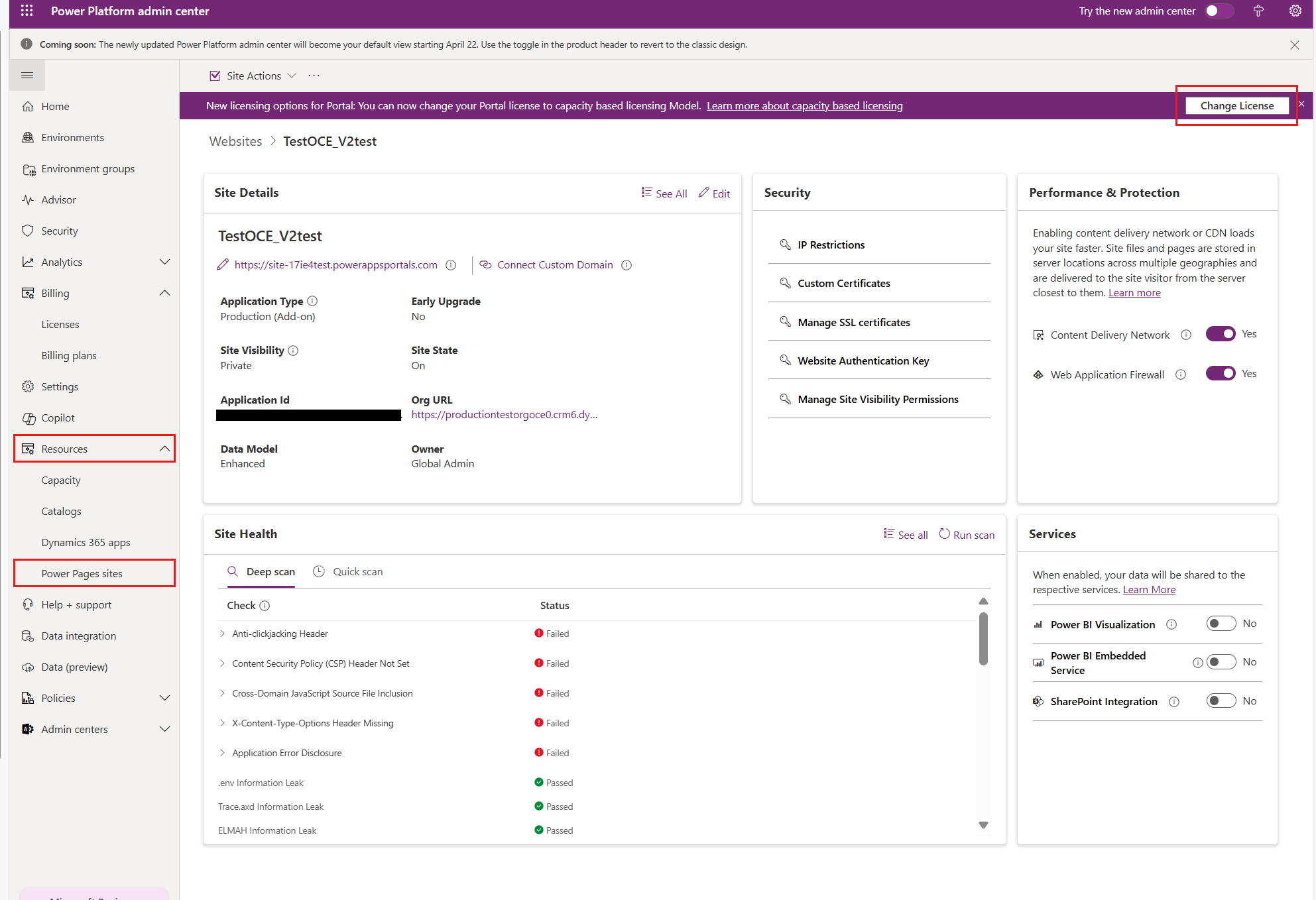 You can convert your existing Power Pages license to capacity-based licensing model. To change your portal license to capacity-based model: