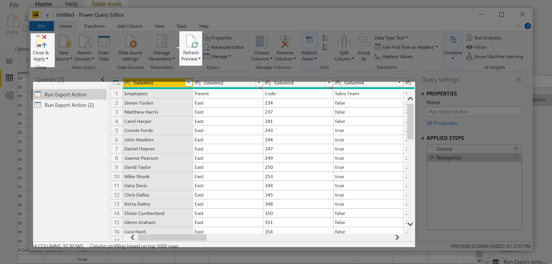 To resolve this error, select either Close & Apply or Refresh Preview.