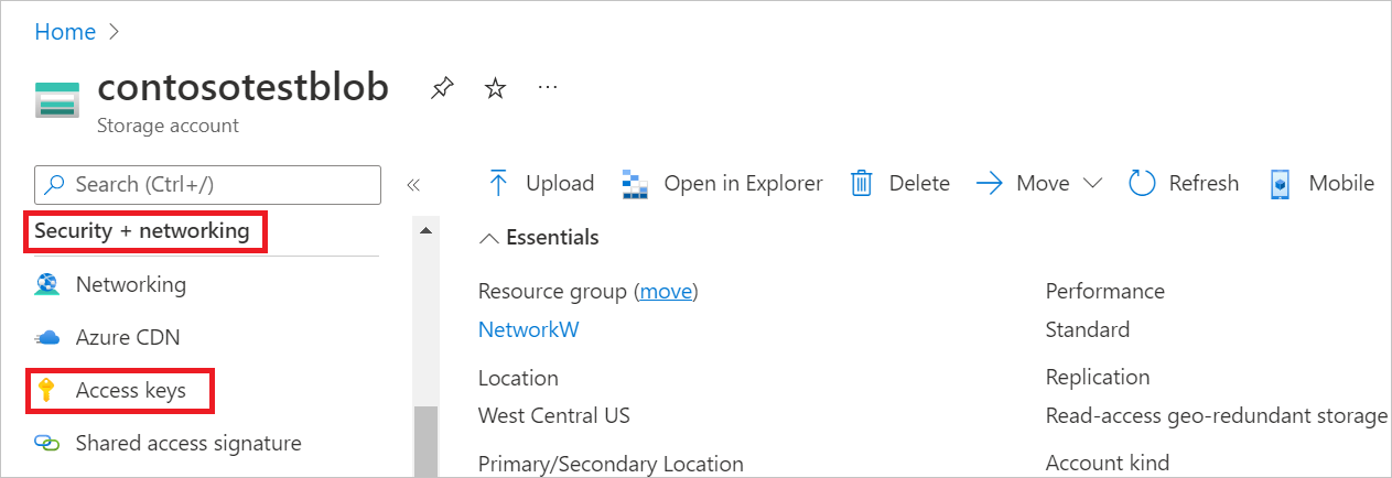 To retrieve your Azure Blob Storage account key to use while authenticating your account in Power Query: