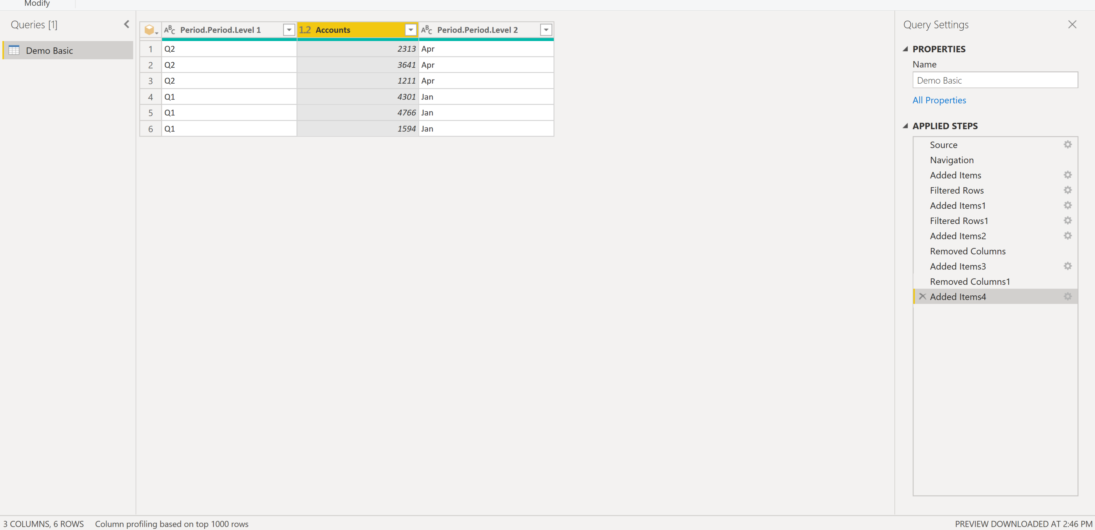 Be aware that this look is a stylistic decision and that there are no differences in data. The levels in the Power Query navigator correspond to the hierarchical level.