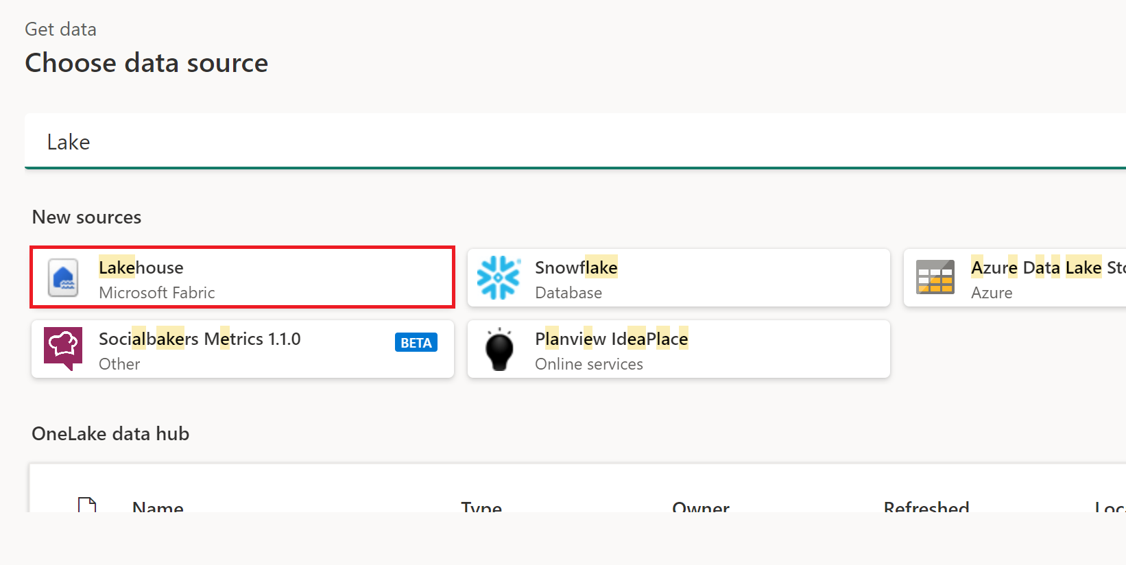Select the Lakehouses connector in the connector selection, and then select Connect. More information: Where to get data