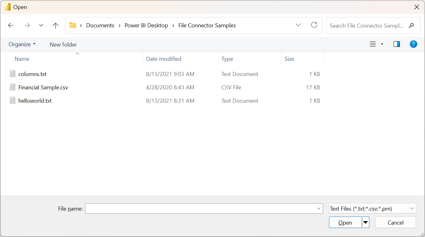 Select the Text/CSV option in Get Data. This action launches a local file browser where you can select your text file.