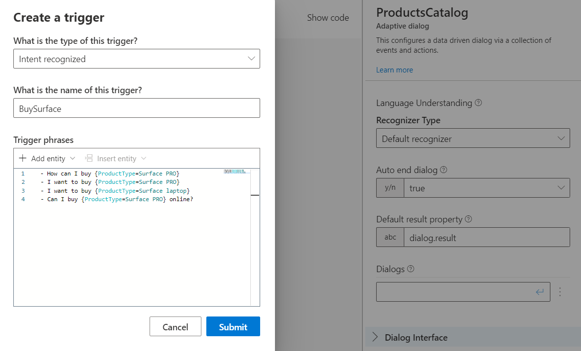 Dialogs provide a way for bots to manage conversations with users. Adaptive dialogs and the event model simplify sophisticated conversation modeling enabling more natural, dynamic conversation flow, interruption, and context switching. They also help you focus on the model of the conversation rather than the mechanics of dialog management. Read more in the dialog concept article.