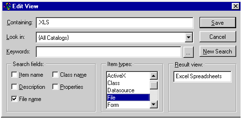 This process allows you to create custom item-type views, and any item can be in any view. Refer to the existing item type settings in the shortcut items included in the Visual FoxPro Catalog items.
