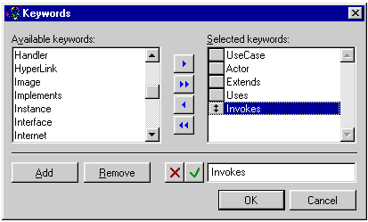 In the following example, I've created a dynamic view of "UseCase" documents by both creating and assigning such keywords as "Actor" and "Extends." The keywords displayed in this list are stored in a table named Keywords.DBF.