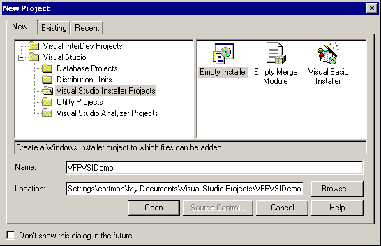 To launch the installer, double-click the file VFPVSIDemo.msi.