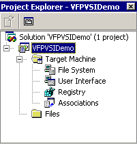 Visual Studio Installer creates your installer project. The Project Explorer displays your installer project hierarchy. You can expand the Target Machine node to start setting up the configuration of your installed product on the target machine.