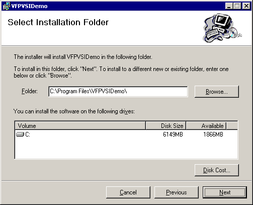 Figure 6. Select Installation Folder step in VFPVSIDemo Setup Wizard