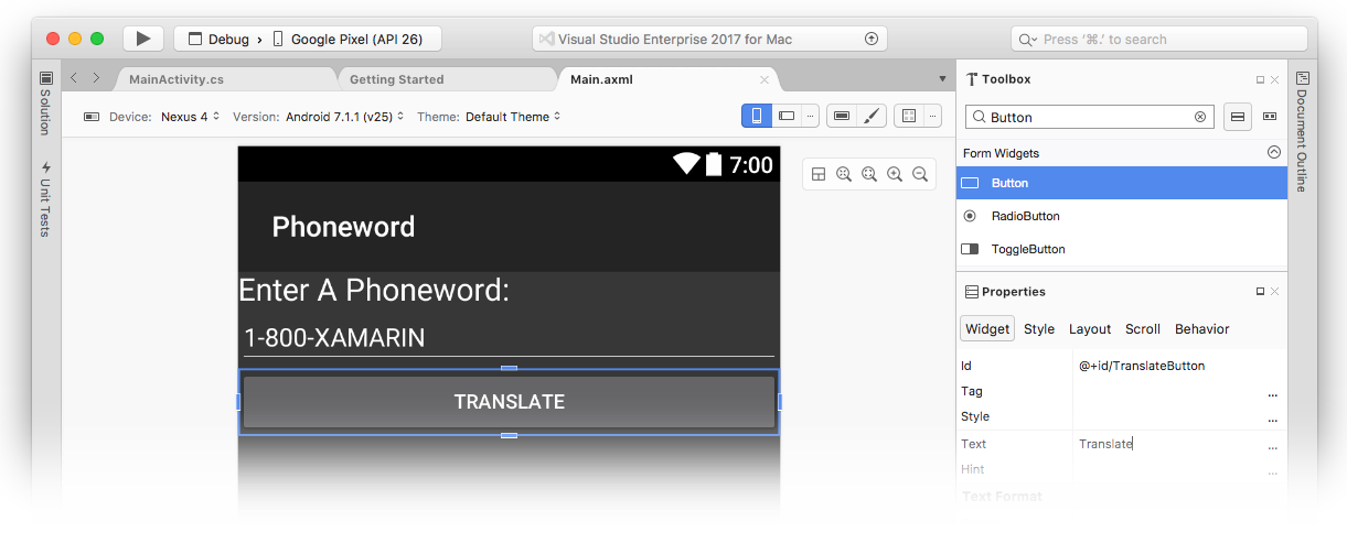 In this two-part guide, you'll build your first Xamarin.Android application and develop an understanding of the fundamentals of Android application development with Xamarin. Along the way, you will be introduced to the tools, concepts, and steps required to build and deploy a Xamarin.Android application.