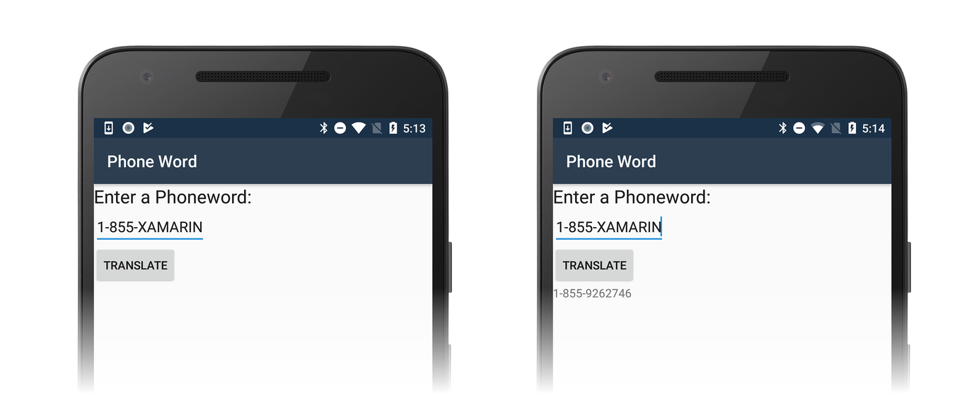 Test the application by running it on an Android device or emulator. Tap the TRANSLATE button to translate 1-855-XAMARIN into a phone number: