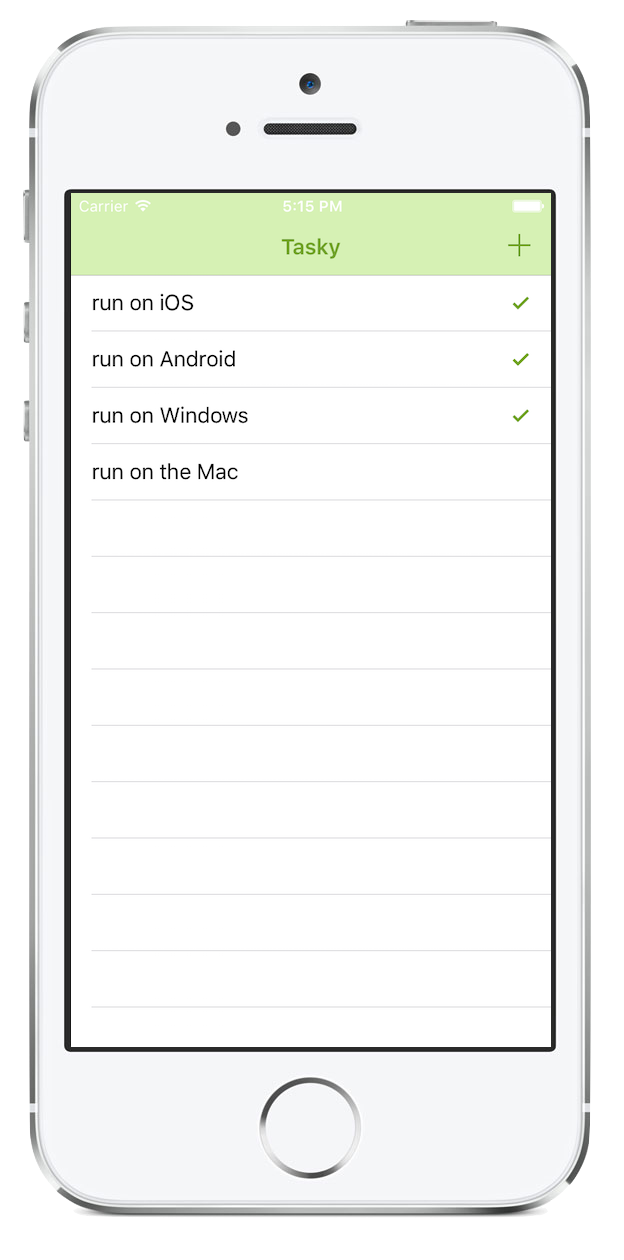 Tasky is a simple to-do list application for iOS, Android and Windows Phone. It demonstrates the basics of creating a cross-platform application with Xamarin and uses a local SQLite database.
