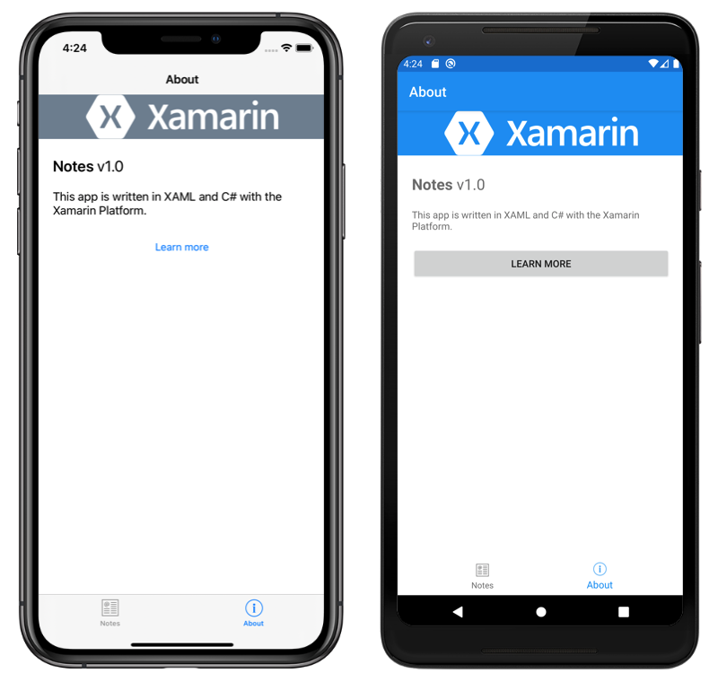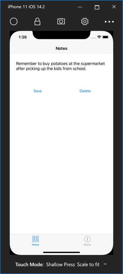The quickstart walks through how to create a cross-platform Xamarin.Forms Shell application, which enables you to enter a note and persist it to device storage. The final application is shown below: