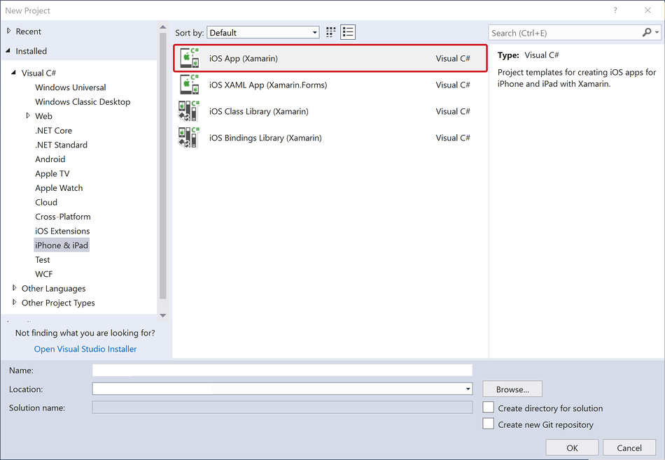 Create Xamarin.iOS Project - Add a new Xamarin.iOS project called InfColorPickerSample to the solution, as shown in the following screenshots: