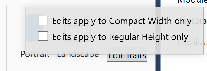 Note that selecting a device and orientation changes only how the iOS Designer previews the design. Regardless of the current selection, newly added constraints are applied across all devices and orientations unless the Edit Traits button has been used to specify otherwise.