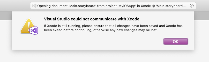 "Visual Studio could not communicate with Xcode"