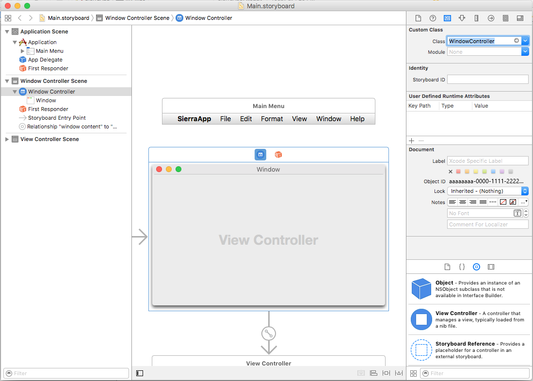 Switch to the Identity Inspector and enter "WindowController" as the Class Name: