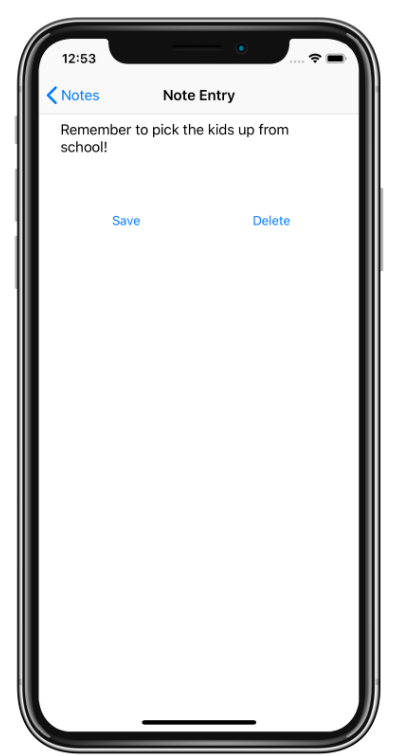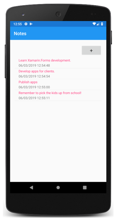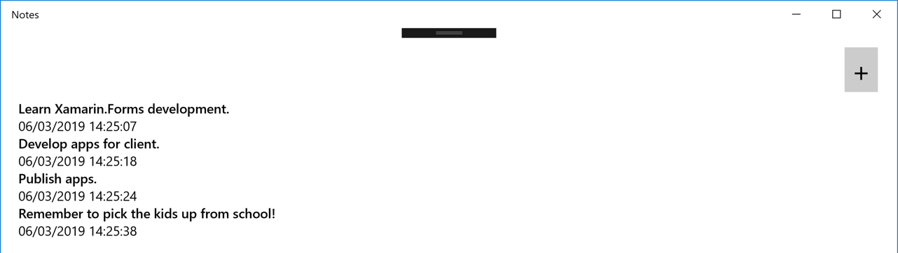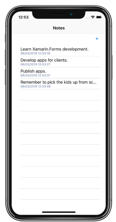 Once the MainPage constructor has executed, the UI defined in the Xamarin.Forms NotesPage class will be displayed, as shown in the following screenshot:
