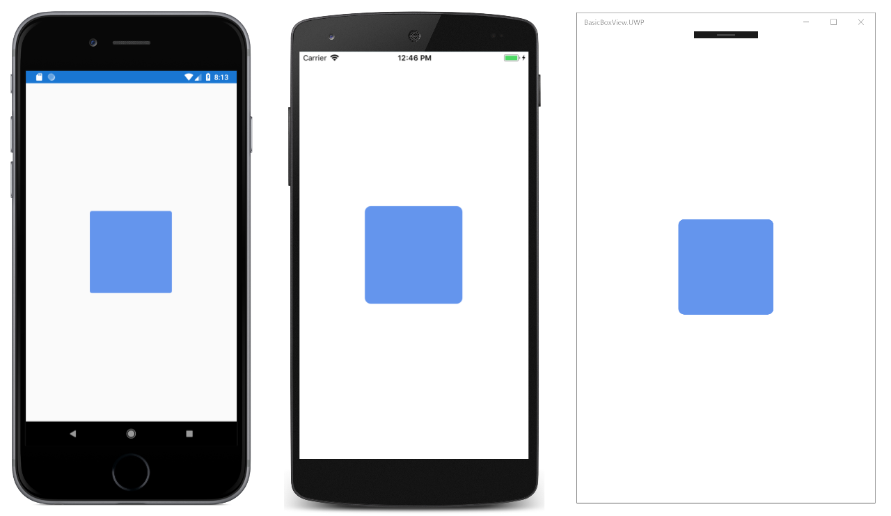A BoxView can also be a child of an AbsoluteLayout. In that case, both the location and size of the BoxView are set using the LayoutBounds attached bindable property. The AbsoluteLayout is discussed in the article AbsoluteLayout.