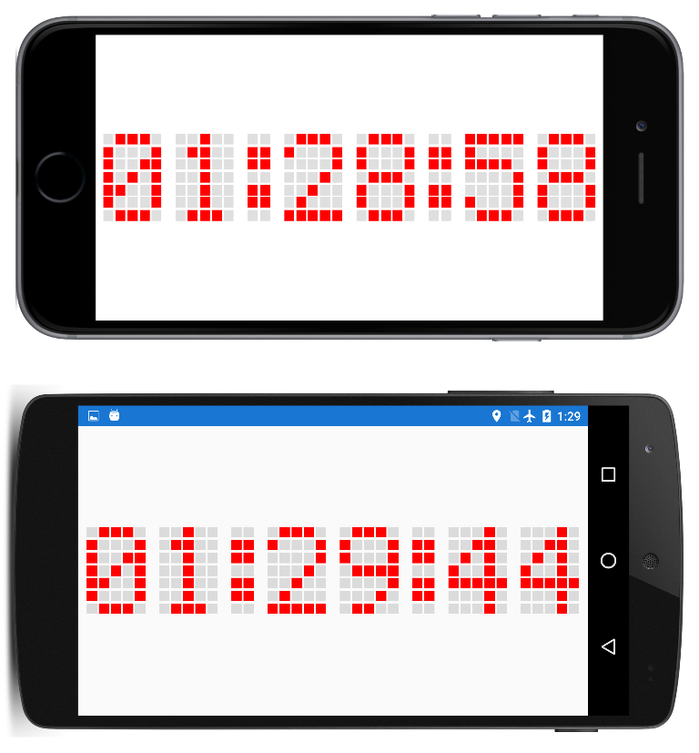 A dot-matrix clock might seem to be an obvious application of BoxView, but BoxView elements are also capable of realizing an analog clock: