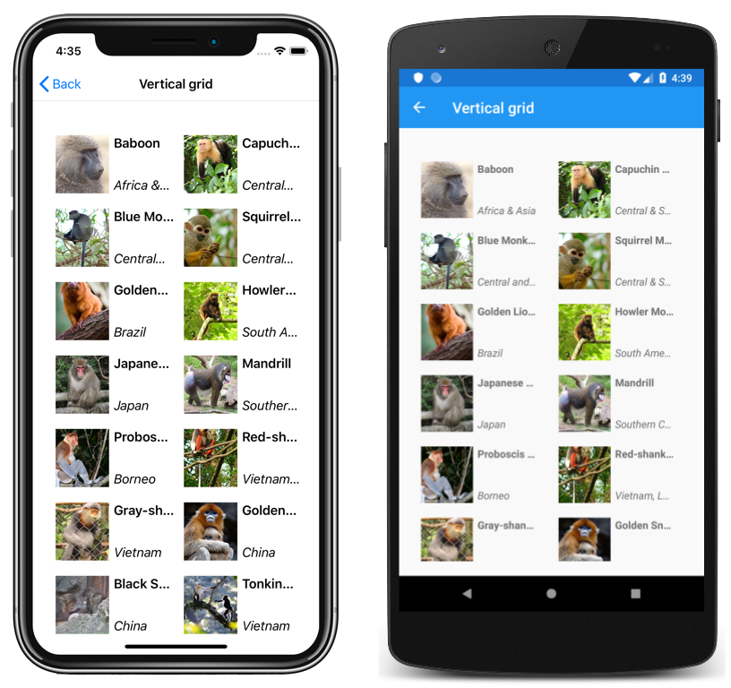In XAML, a CollectionView can display its items in a vertical grid by setting its ItemsLayout property to VerticalGrid: