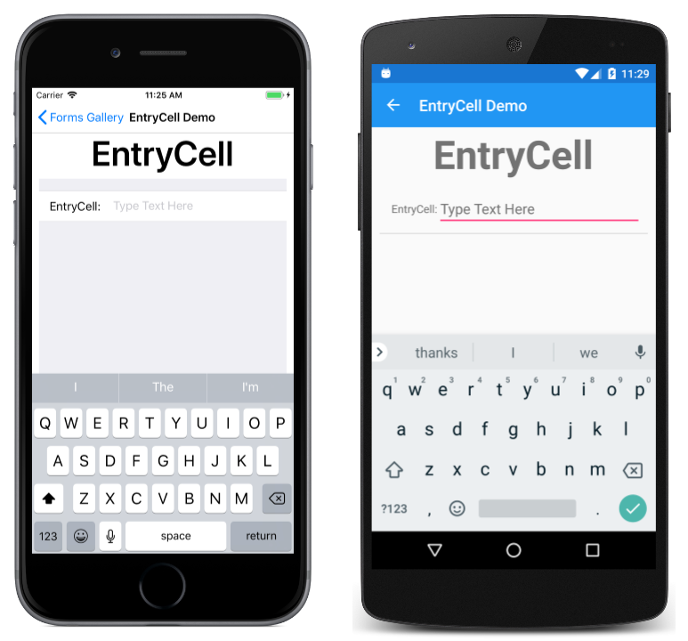 The EntryCell defines a Label property that identifies the cell and a single line of editable text in the Text property. Handle the Completed event to be notified when the user has completed the text entry.API Documentation / Guide |