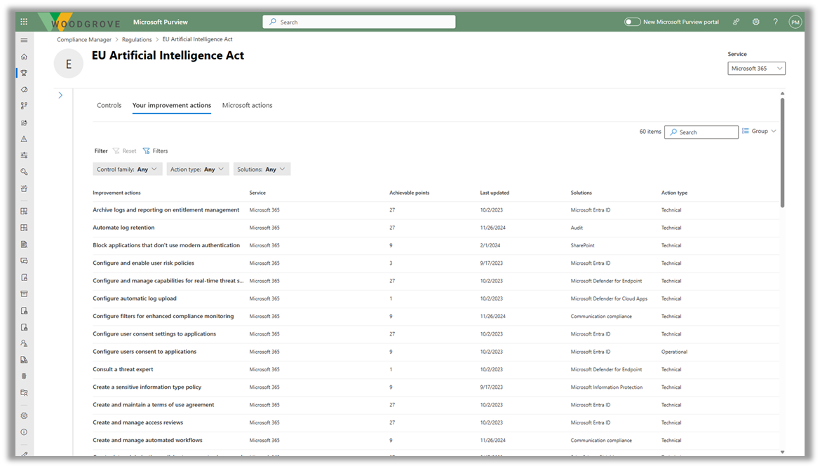 | 1 | Build and manage assessments in Microsoft Purview Compliance Manager | Enterprise-wide |