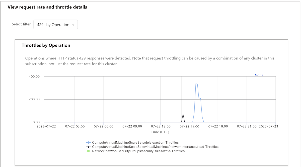 You can also filter throttles by operations. VMSS VM delete operation is throttled in this case.