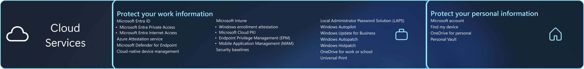 Windows 11, combined with Microsoft Entra ID for identity management, and cloud-based device management solutions like Microsoft Intune[4], can be the foundation of a Zero Trust security model that enables flexible workstyles while controlling access, safeguarding sensitive information, and mitigating threats.
