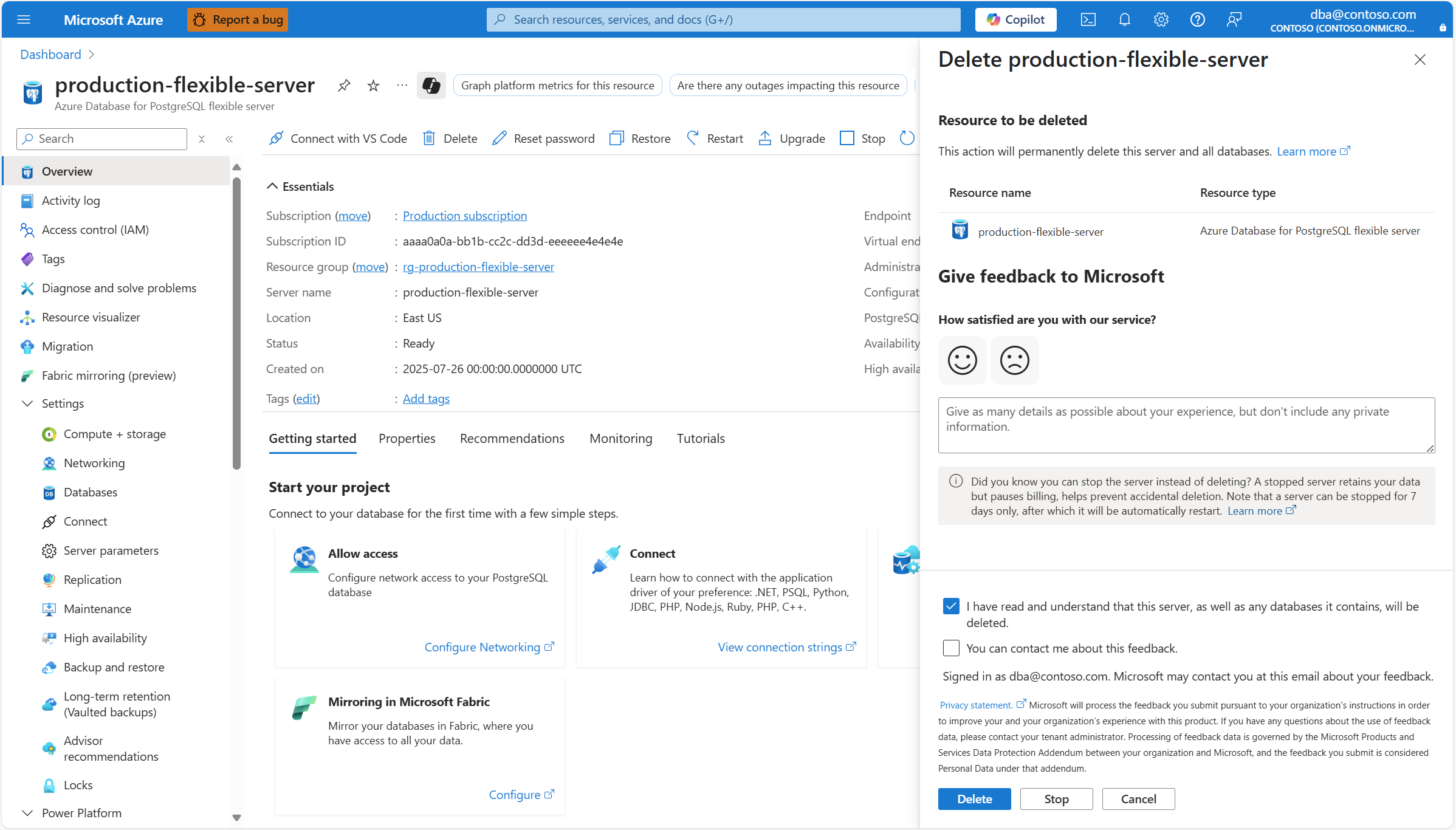 U kunt de resources die u in deze quickstart hebt gemaakt op twee manieren opschonen. U kunt de Azure-resourcegroep verwijderen, met alle resources uit de resourcegroep. Als u andere resources in dezelfde resourcegroep intact wilt houden, kunt u alleen de flexibele serverinstantie van Azure Database voor PostgreSQL verwijderen.