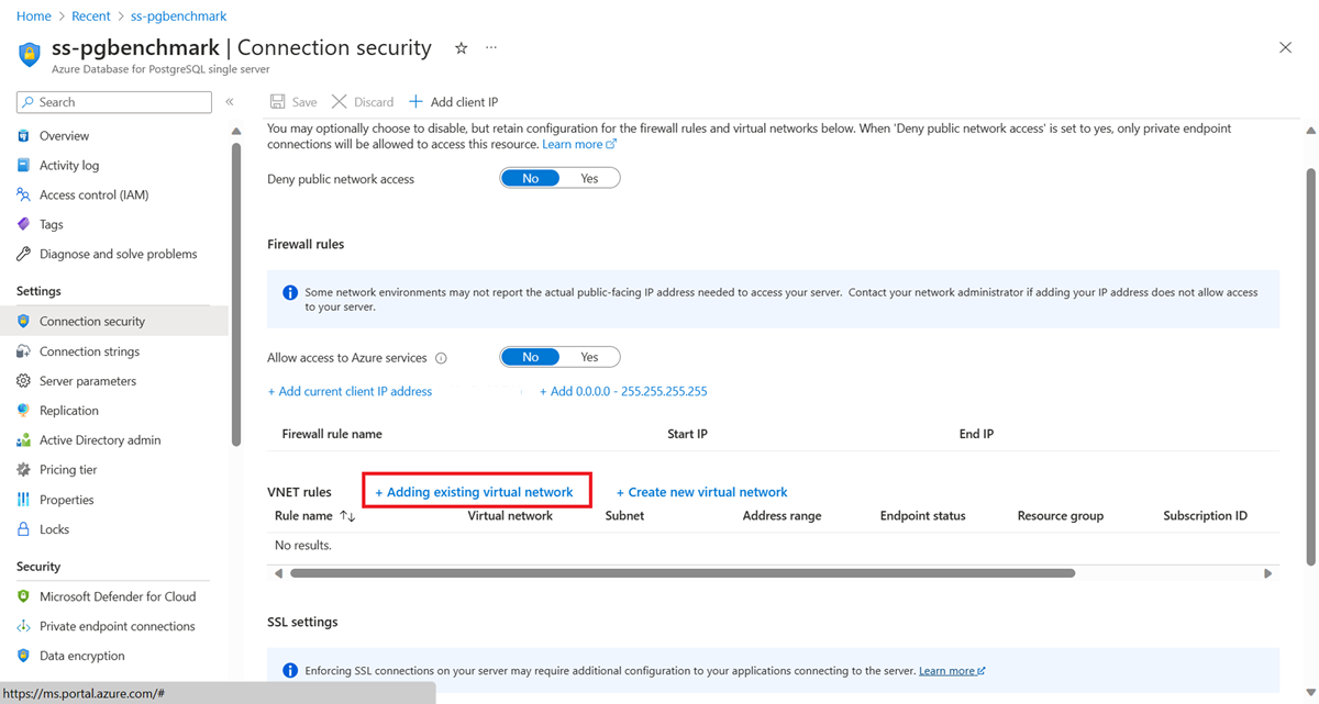 - Stel regels voor netwerkbeveiligingsgroepen in Azure in om binnenkomende verbindingen van de cloudprovider (bijvoorbeeld van AWS of GCP) naar het IP-adresbereik van Azure Database for PostgreSQL toe te laten.