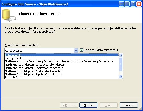Bild 15: Konfigurera ObjectDataSource för att använda klassen (CategoriesBLL i full storlek)