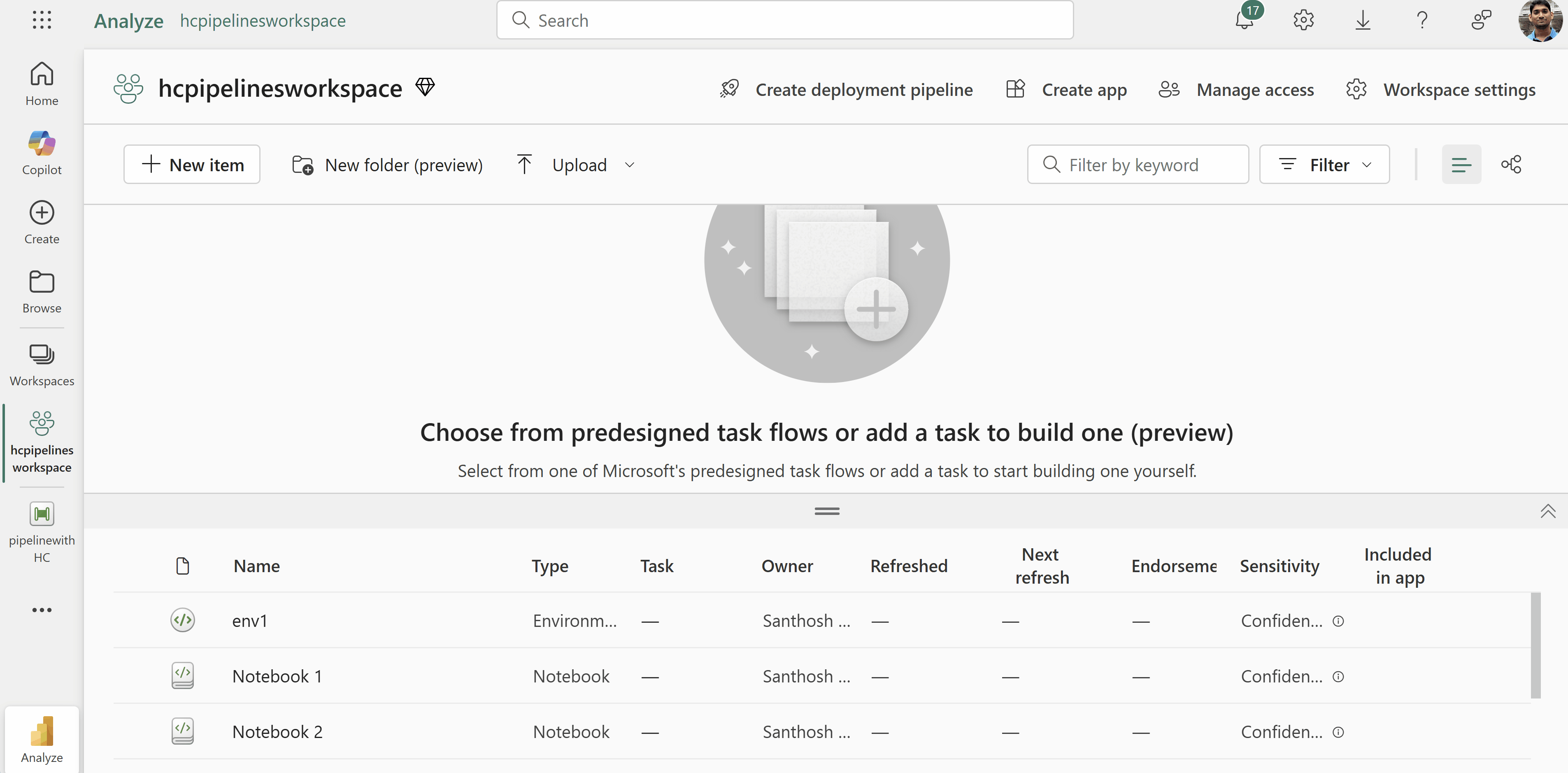 Gå till arbetsytan, välj knappen Nytt objekt och skapa en ny pipeline.