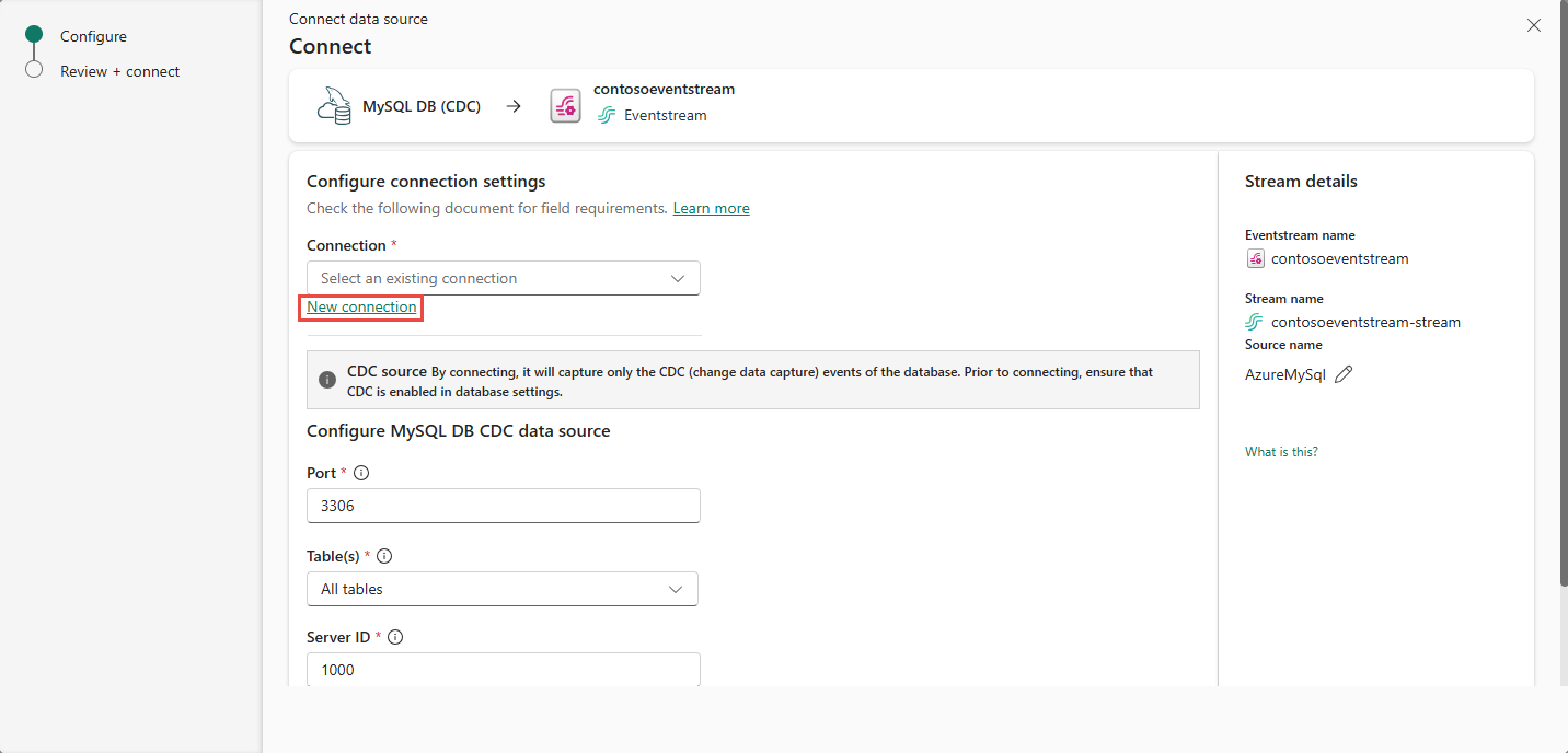 På sidan Granska + anslut väljer du Lägg till för att slutföra konfigurationen när du har granskat sammanfattningen för MySQL DB CDC-källan.