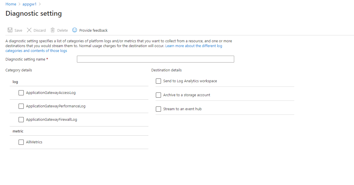 Set-AzDiagnosticSetting -ResourceId $gateway.ResourceId -WorkspaceId $workspaceId -Enabled $true