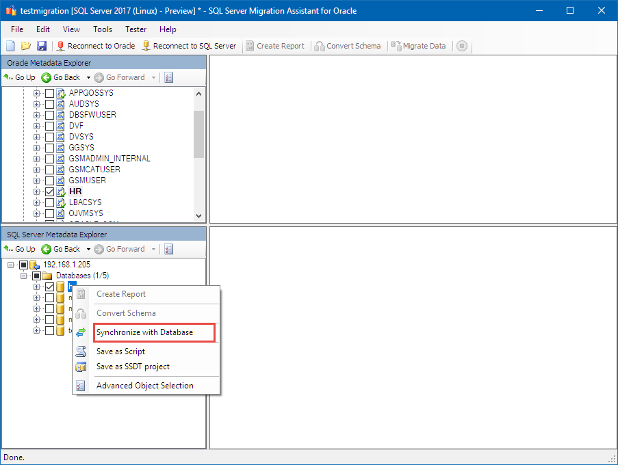 Högerklicka på HR i Oracle Metadata Explorer och välj Migrera data.