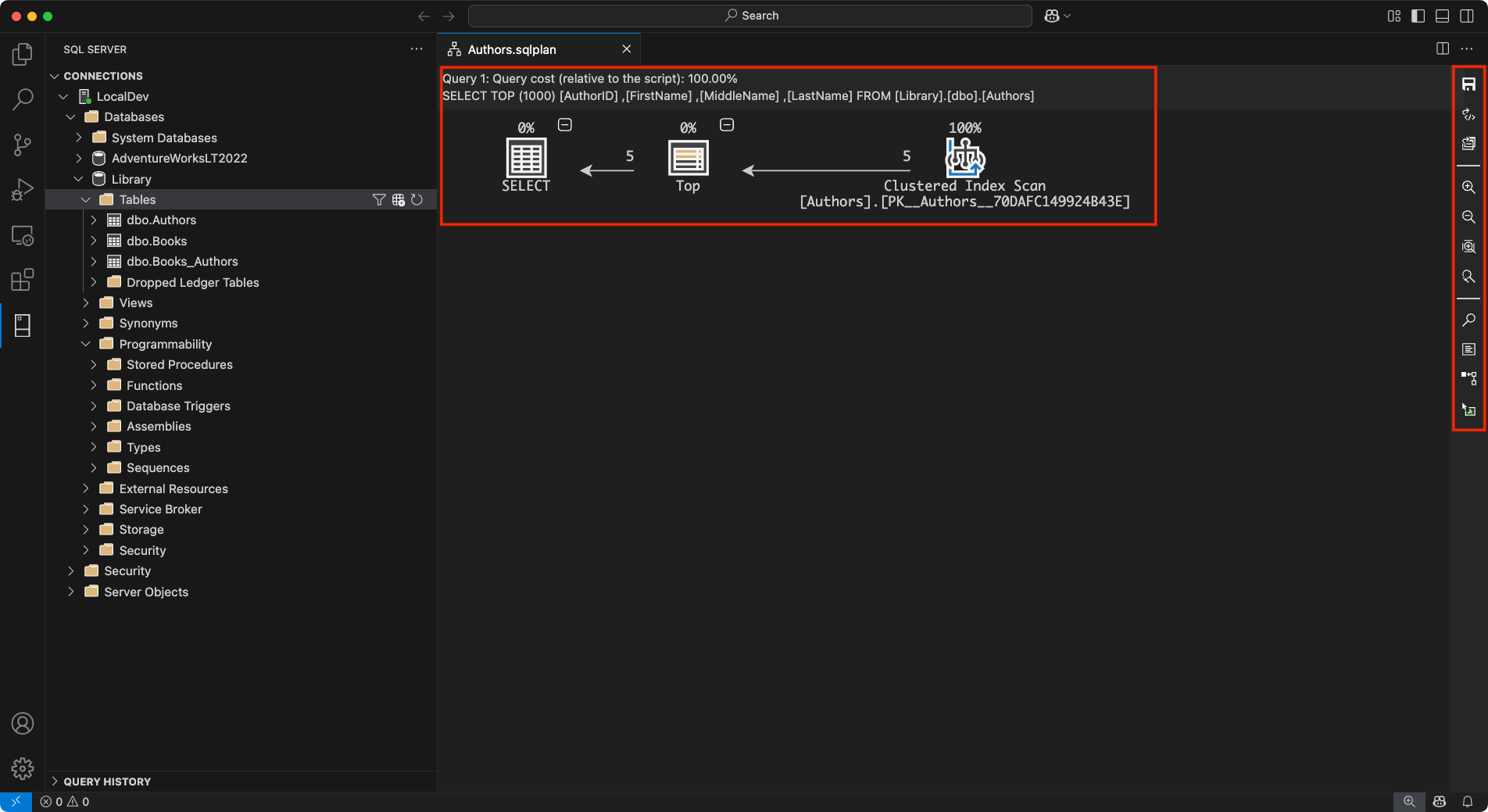 Med Visualiseraren för frågeplan i MSSQL-tillägget för Visual Studio Code kan utvecklare analysera SQL-frågeprestanda genom att visa detaljerade körningsplaner. Det här verktyget ger insikter om hur SQL-frågor körs, vilket hjälper utvecklare att identifiera flaskhalsar och optimera sina frågor.