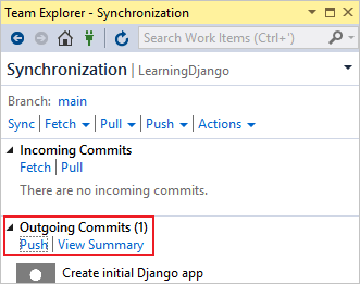 När du har uppdaterat Django-appkoden och testat uppdateringarna kan du granska och checka in ändringarna i källkontrollen: