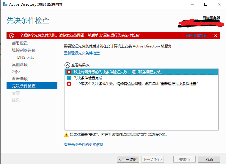 请问您是在把成员服务器提成为域控制器还是把域控制器降级为成员服务器,出现的报错信息?
