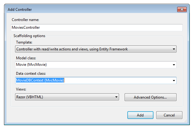 - 控制器名称: MoviesController。 (这是默认值。)