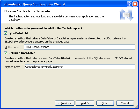 EmployeesTableAdapter现在应包含一组新的方法来访问指定月份雇用的员工。