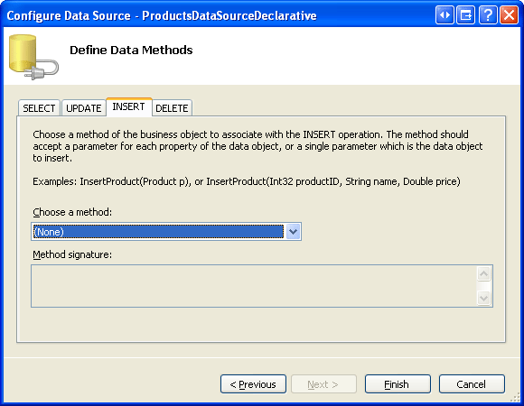 图 11:将 ObjectDataSource 配置为使用 ProductsCL 类(单击以查看全尺寸图像)