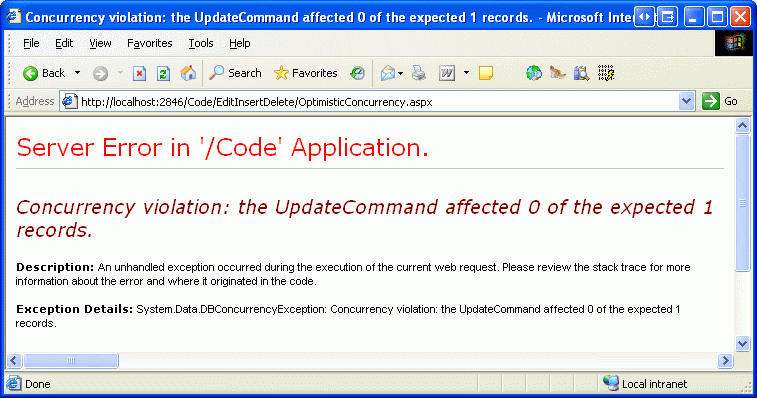 图 17:检测到并发冲突时,将引发一个 DBConcurrencyException (单击以查看全尺寸图像)