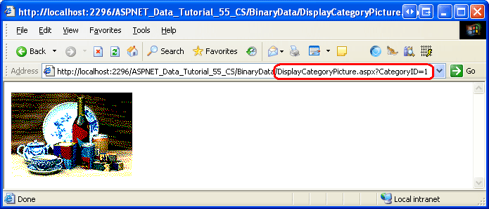 现在,我们有一个网页来显示特定类别的图片,可以使用图像 Web 控件或指向的 HTML <img> 元素来显示它DisplayCategoryPicture.aspx?CategoryID=categoryID 其 URL 由数据库数据确定的图像可以使用 ImageField 显示在 GridView 或 DetailsView 中。 ImageField 包含DataImageUrlField和DataImageUrlFormatString属性,其工作类似于 HyperLinkField 和DataNavigateUrlFieldsDataNavigateUrlFormatString属性。