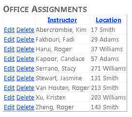 在上一教程中,你学习了如何使用 控件和实体框架对数据 ObjectDataSource 进行排序和筛选。 本教程介绍在使用实体框架的 ASP.NET Web 应用程序中处理并发的选项。 你将创建一个专用于更新讲师办公室作业的新网页。 你将在该页和之前创建的“部门”页中处理并发问题。