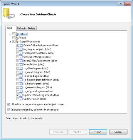OfficeAssignment实体。 (跟踪属性和存储过程不必一起使用;它们只是在这里分组在一起用于说明。) - 将 CRUD 方法添加到 DAL 和实体的 BLL