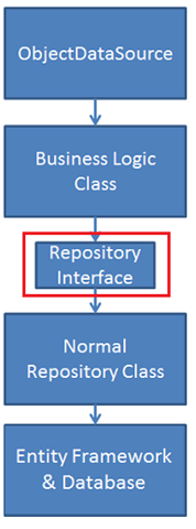 完成实现存储库模式的简介,以便将 ObjectDataSource 控件与实体框架配合使用。 有关存储库模式和可测试性的详细信息,请参阅 MSDN 白皮书 可测试性和实体框架 4.0。